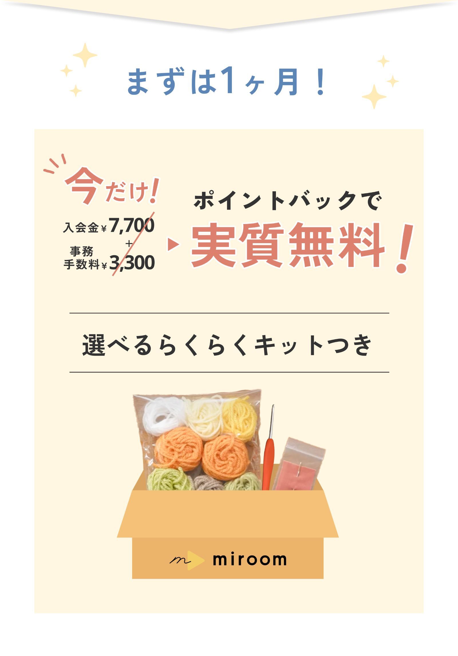 作品を制作するための材料や道具が揃うオリジナルキットです。本ページからお申し込みいただくと、初回に限り1つを無料でプレゼントさせていただいております(送料無料)。
